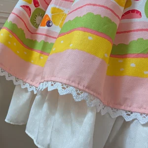 An amazing fun cotton fabric direct from Japan, this print features stripes of fruit sandwiched between layers of pink bread!