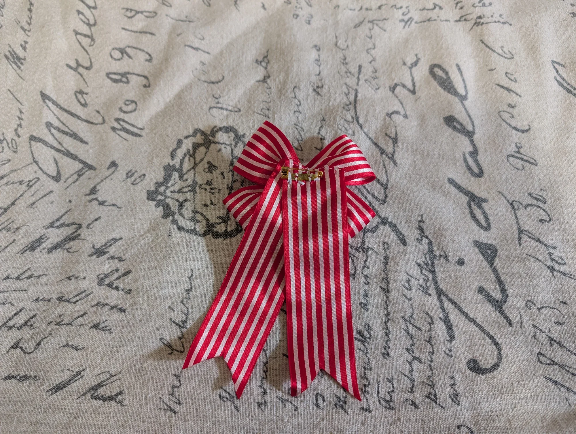 Made to match our 2025 re-release of the Konbini Market in Onigiri this pin back brooch can be worn on your dress, a cardigan or even pinned onto a hat! It features a quilted onigiri sewn onto red and white stripped ribbon A fun little accessory to add a bit of whimsy to any coordinate.