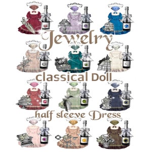 Jewelry Classical Doll Half Sleeve Long Dress OP (Solid Color・Short Sleeves)