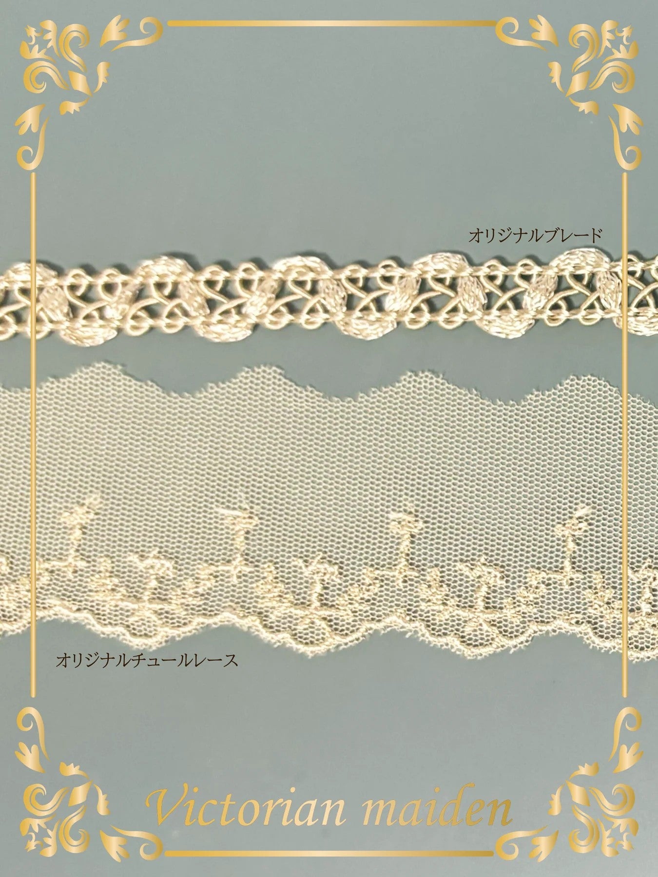 ・装飾:オリジナルロゴ入りチュールレース、オリジナルブレード、飾りメタルボタン