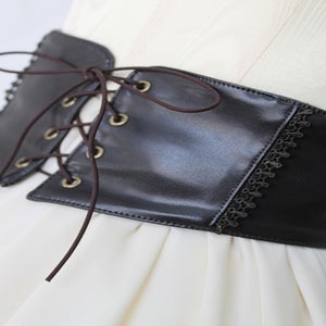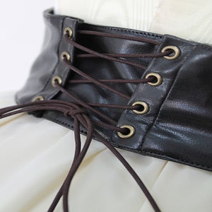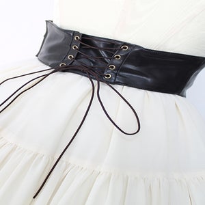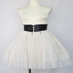 It is a wide belt that you can call in a corset style. We used high-quality synthetic leather with durability and suppleness that is attractive. Braided on the back, you can prepare to prepare silhouettes. We have prepared three colours for your color regardless of the season. Not only the clothes of the same series, but also various clothes and coordination can be got. The cord ends are processed into chips. The color of the race is all the same color as the front. The color of the code is ivory generation system, dark brown dark brown series, brown is brown series. The colours of eyelet metal chip are all antique gold. Dry cleaning possible. (Please consult with your used cleaning shop). Left side open fastener bright. The waist size can be adjusted by front knitting. Please avoid tumble dry. There is a thing that falls off depending on the ingredients of detergent and put on. Please wash with different things (especially white), avoid overlapping after dehydration. Please be aware of the hook by accessories and nails. ※ Colour: Ivory アイボリー Dark brown ダークブラウン Brown ブラウン