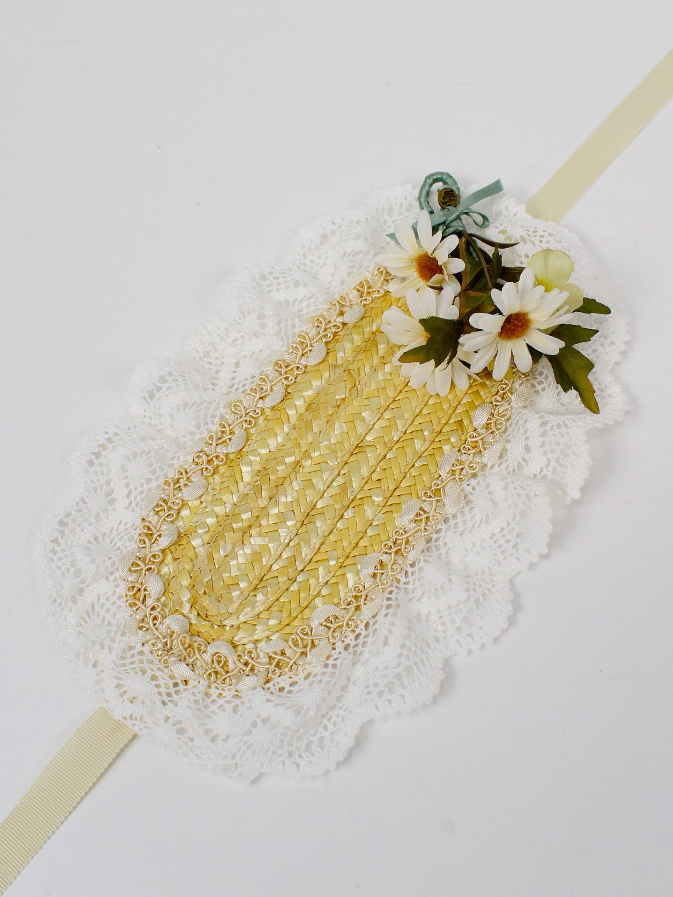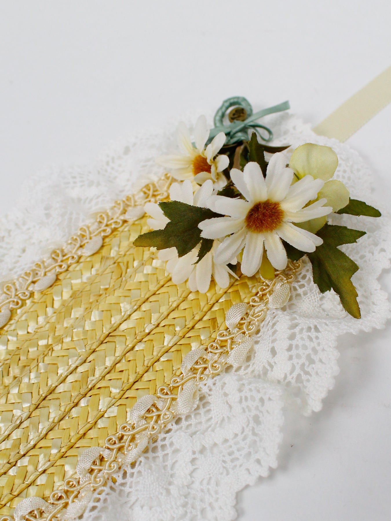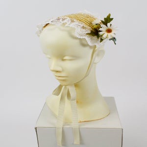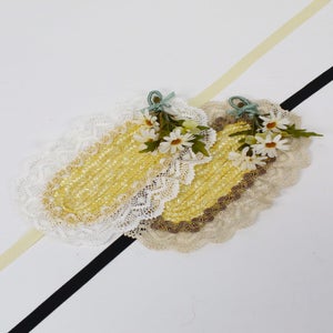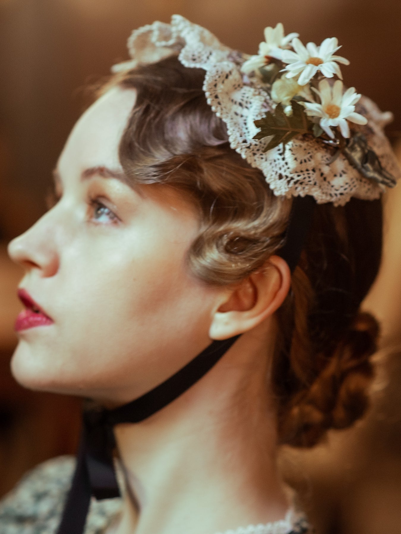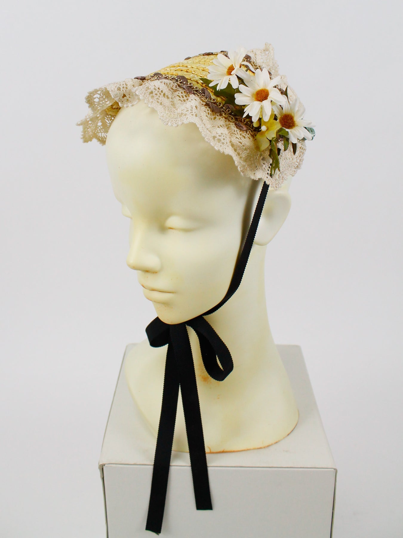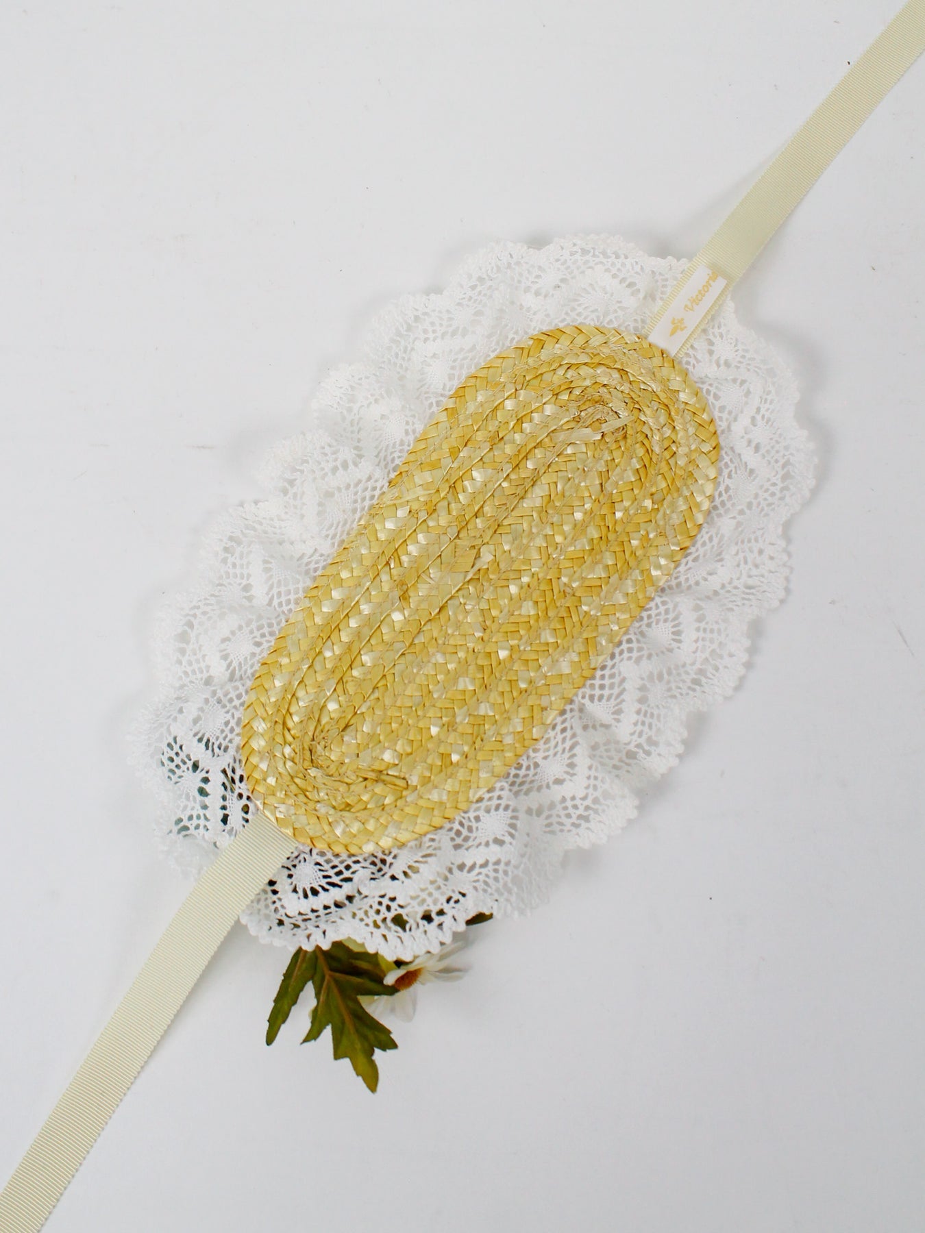 "[Limited sale on Victorian maiden official EC site] A pretty headdress decorated with summery natural straw and pure white marguerite. The body of the headdress is decorated with plenty of elegant torsion lace with a delicate stitch pattern, giving it a feminine and elegant finish. The inside of the lace is decorated with braids, and the tying ribbon is a petasham ribbon, giving it a luxurious finish that uses high-quality materials down to the last detail. The removable corsage is decorated with bright green leaves and a lovely marguerite with yellow in the center of the white petals, and a pale green satin ribbon.