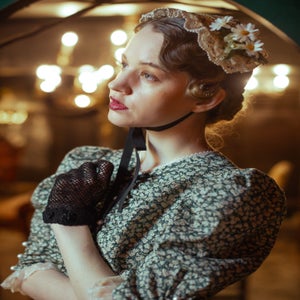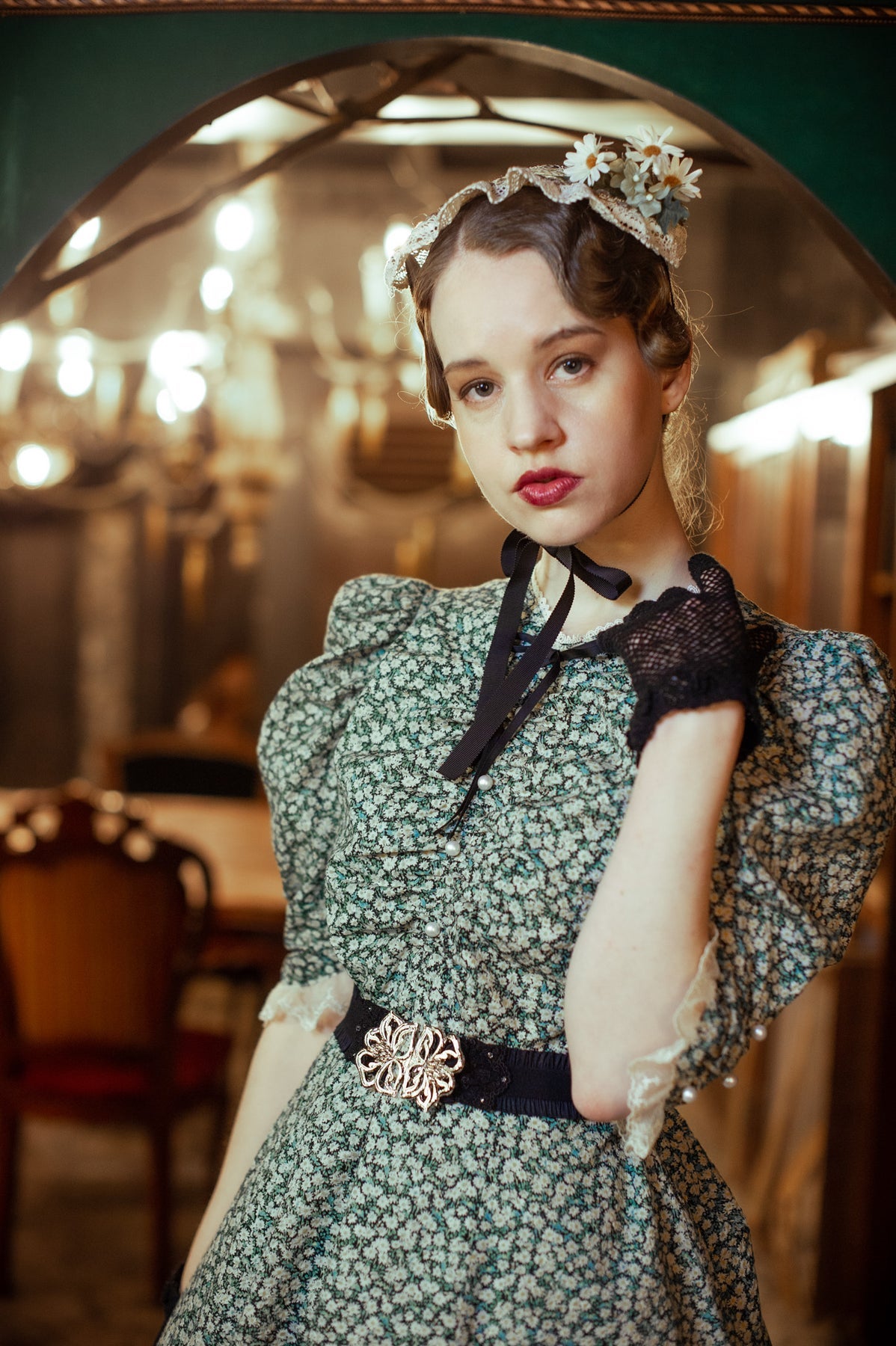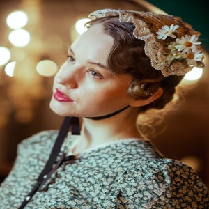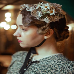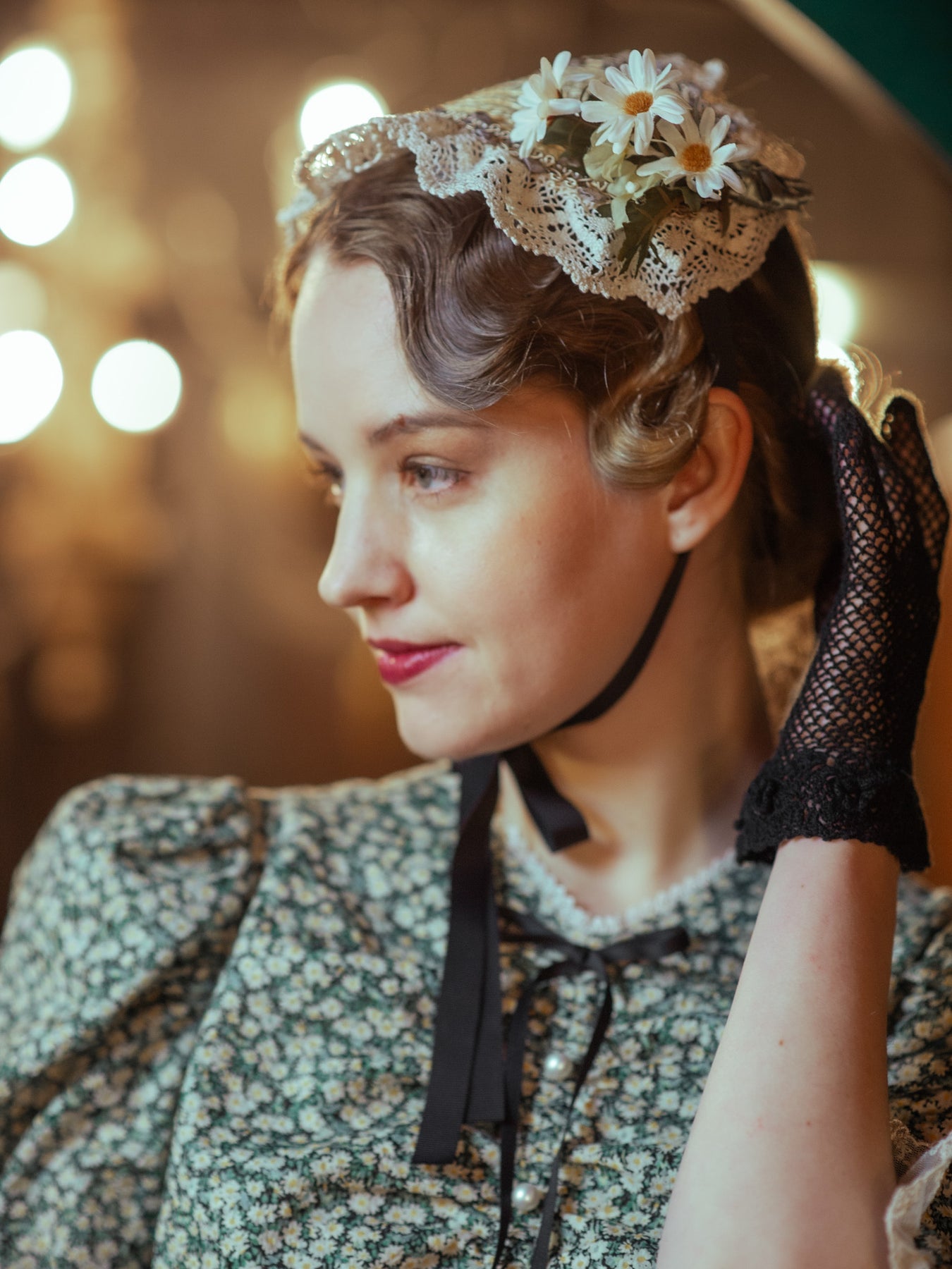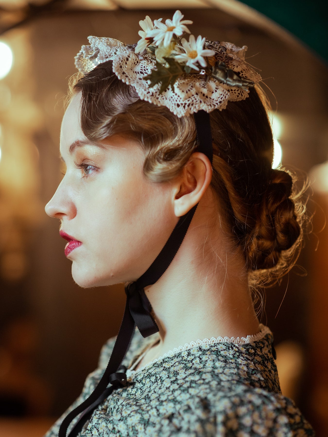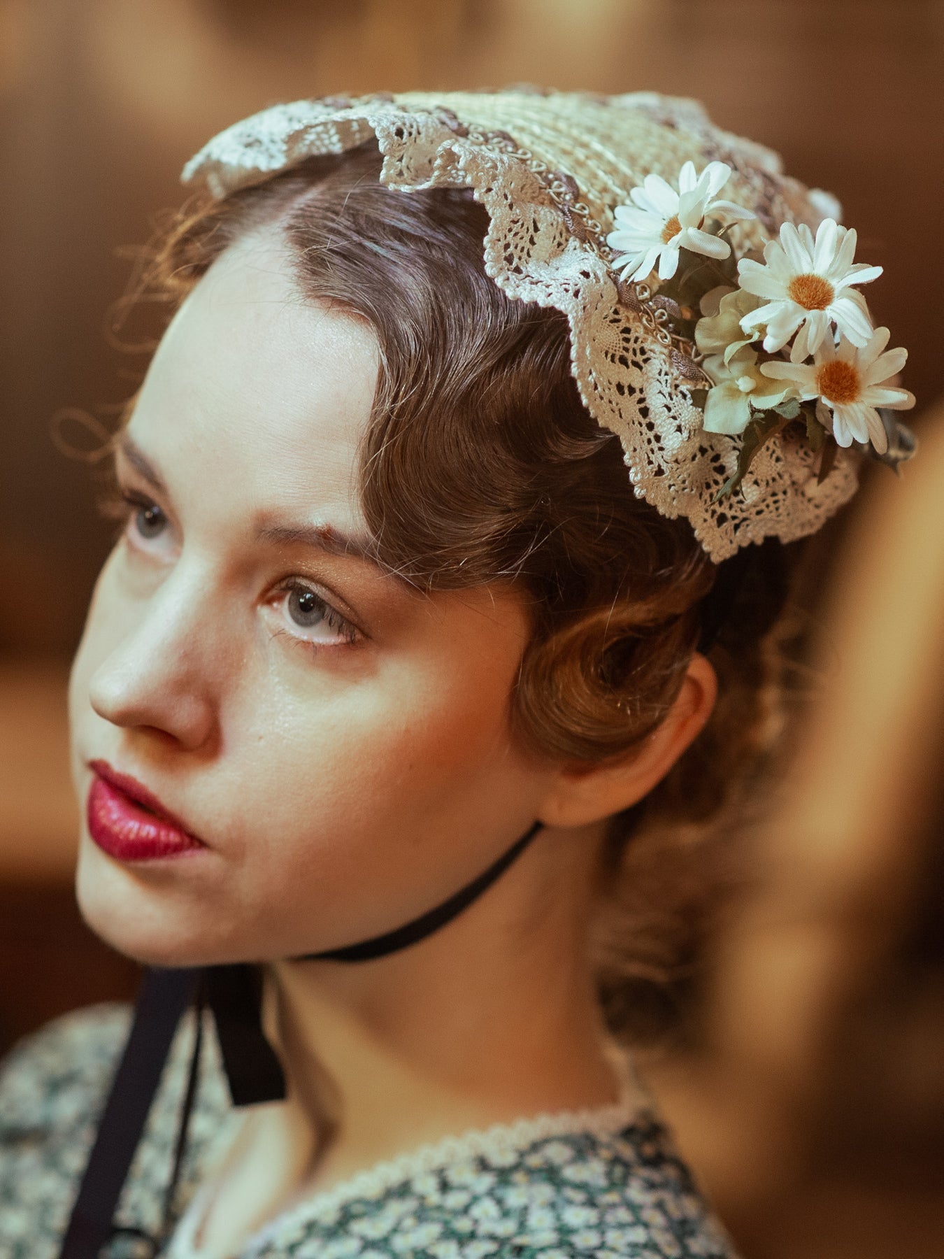 "[Limited sale on Victorian maiden official EC site] A pretty headdress decorated with summery natural straw and pure white marguerite. The body of the headdress is decorated with plenty of elegant torsion lace with a delicate stitch pattern, giving it a feminine and elegant finish. The inside of the lace is decorated with braids, and the tying ribbon is a petasham ribbon, giving it a luxurious finish that uses high-quality materials down to the last detail. The removable corsage is decorated with bright green leaves and a lovely marguerite with yellow in the center of the white petals, and a pale green satin ribbon.