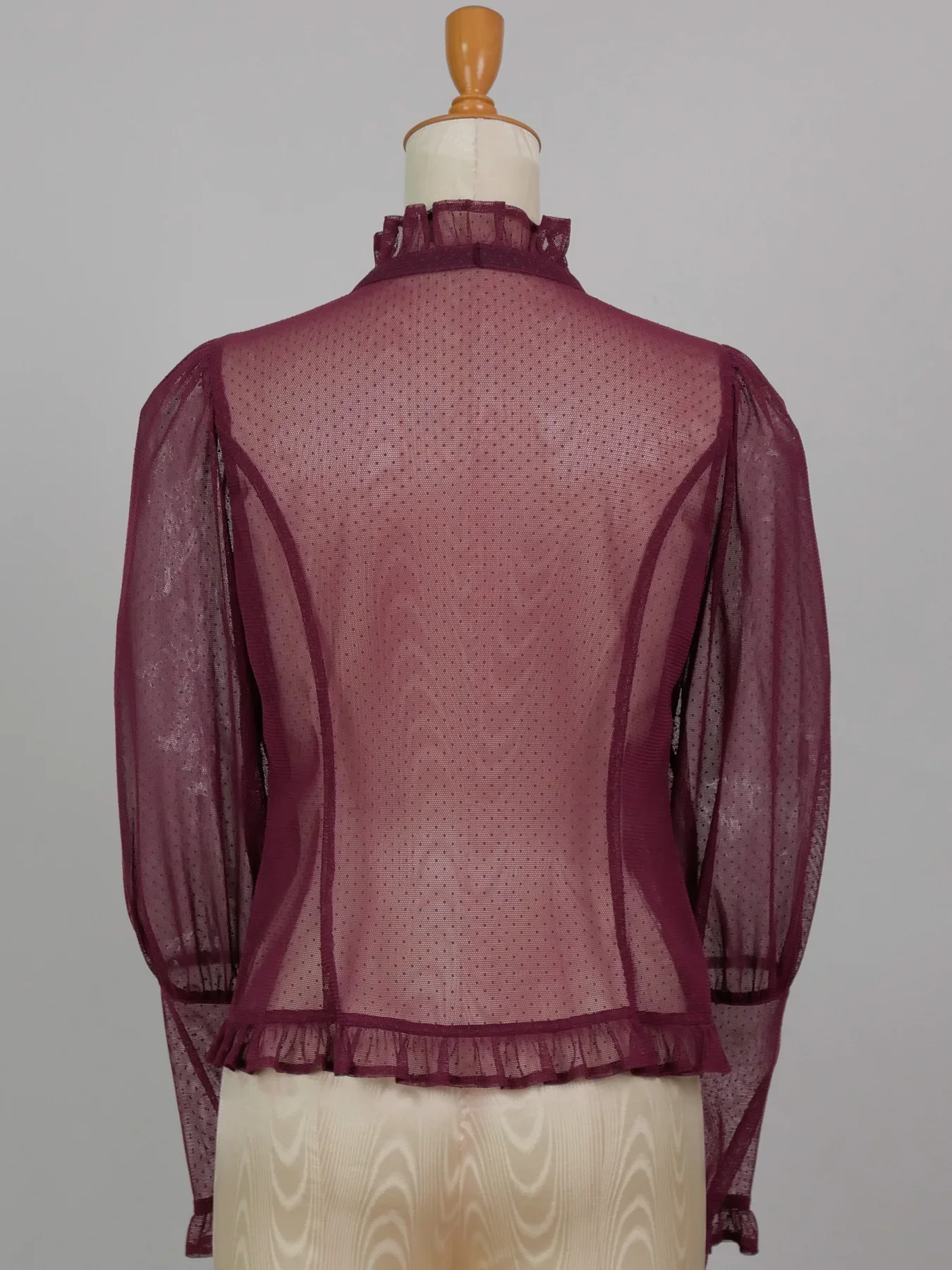 大きめのマトンスリーブとロングカフスのお袖が女性らしさを惹きたてます。