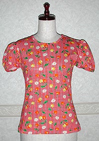 チェリーチェック半袖パフTシャツ