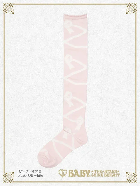 Ribbon & Polka Dot Openwork Pattern Crew Length Socks
