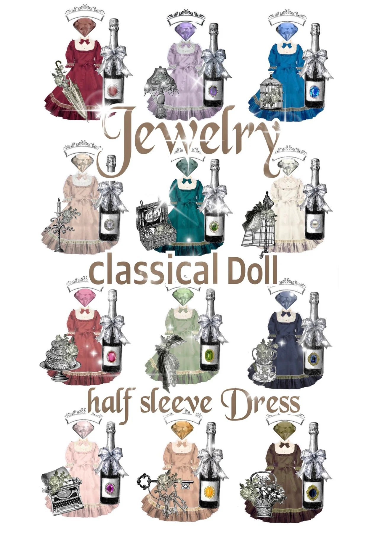 Jewelryクラシカルドールハーフスリーブロングドレス OP(無地・半袖)