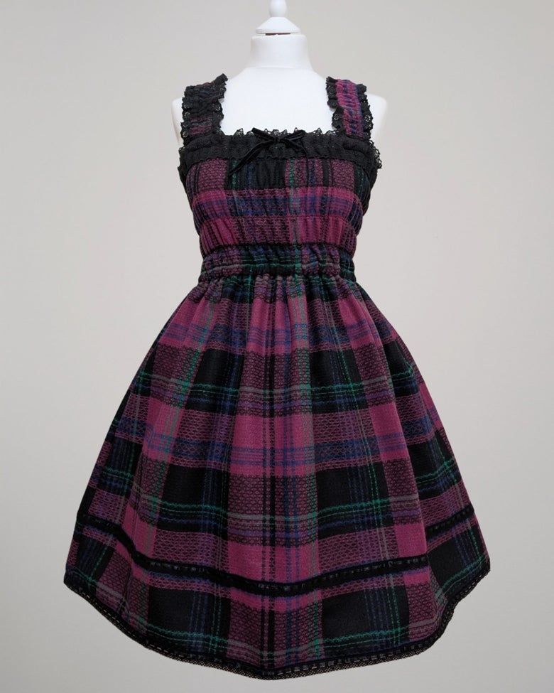 Distant Melody ~ Purple Tartan Wool Shirring JSK