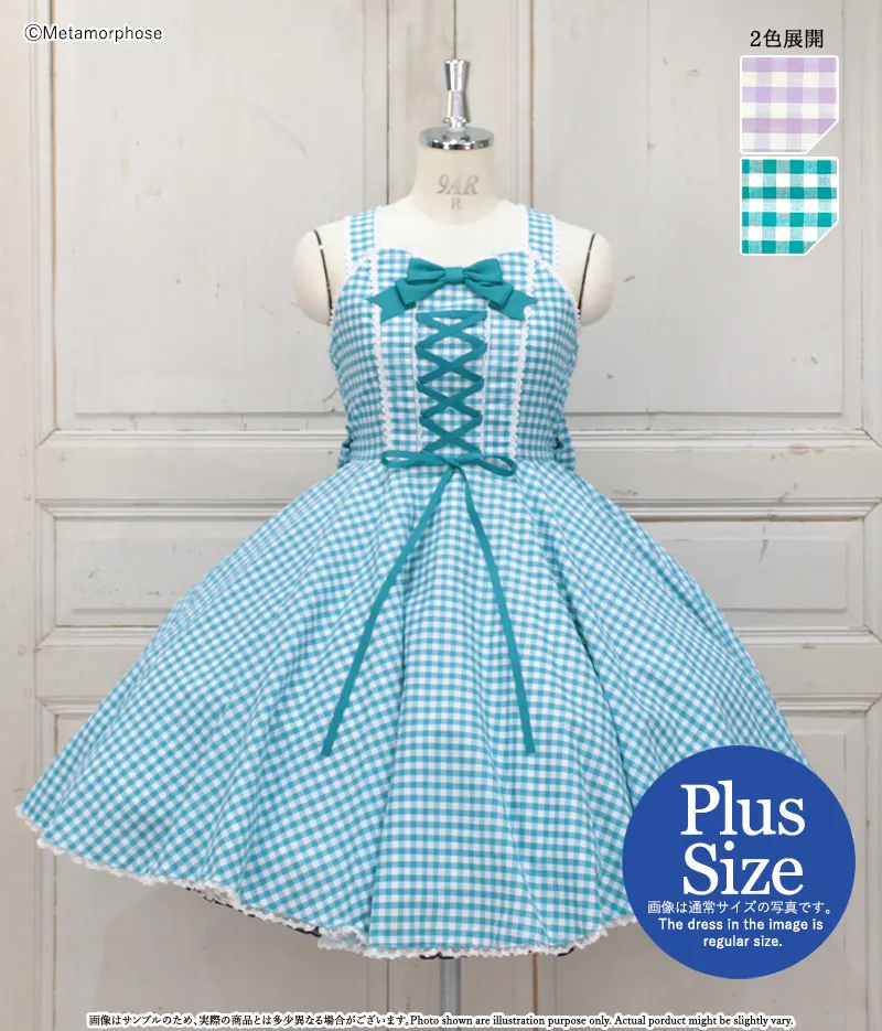 【プラスサイズ】Sugarサーキュラージャンパースカート(ギンガム)