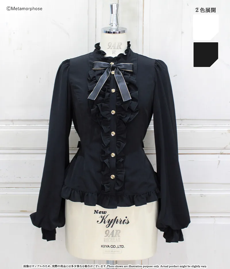 スタンドカラートリプルフリルブラウス