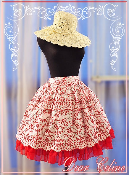 ☆Dear Celine 六月微夏 红色水玉定位刺绣半身裙☆