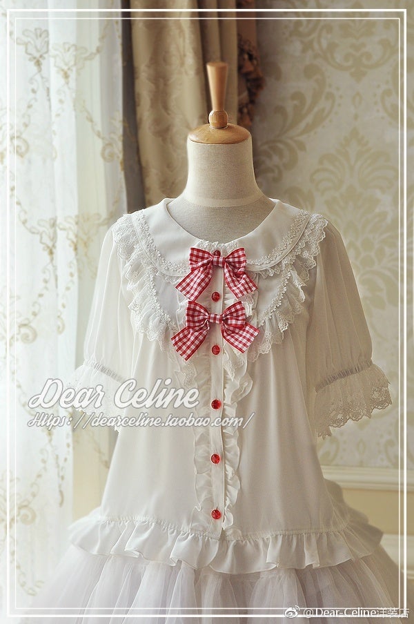 安妮兔的甜品工坊 灯笼袖蕾丝衬衫