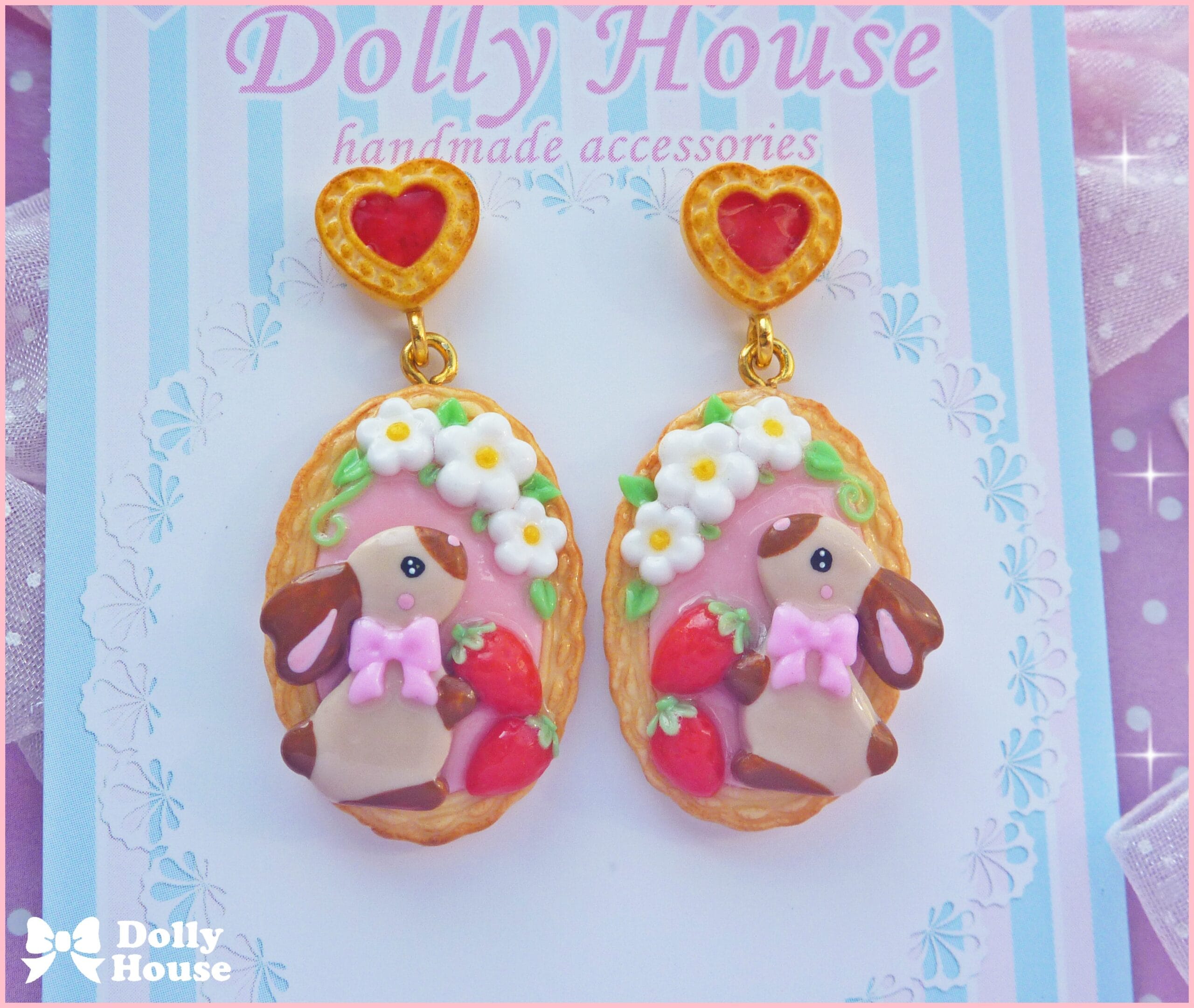 Dolly House ~ Sweet Strawberry Bunny Earrings