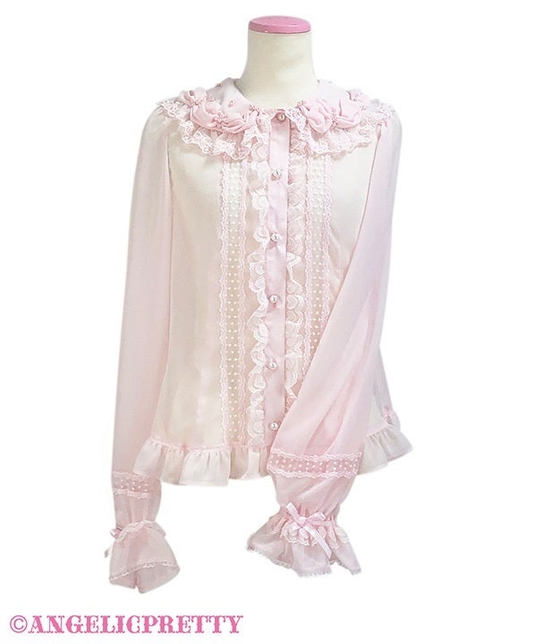 繁花 拉夫领剪花雪纺灯笼袖荷叶领百搭洛丽塔衬衣