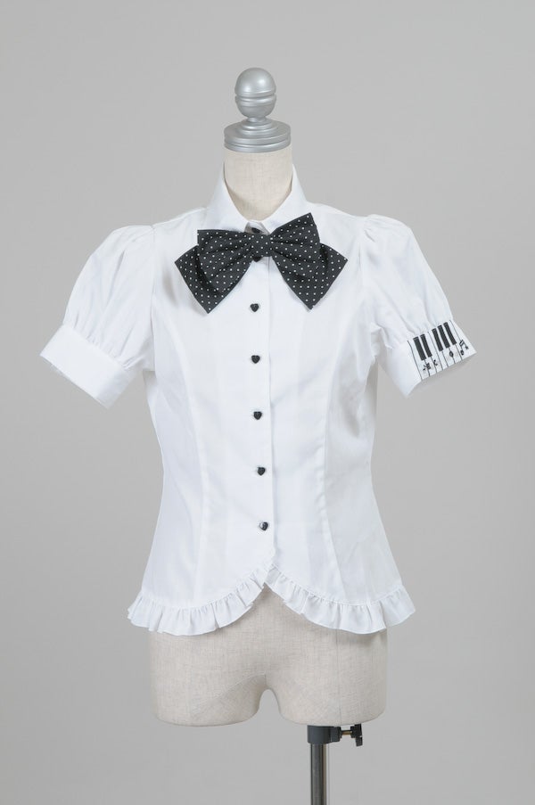 Peace Now ~ Piano Embroidered Ribbon Puff Blouse