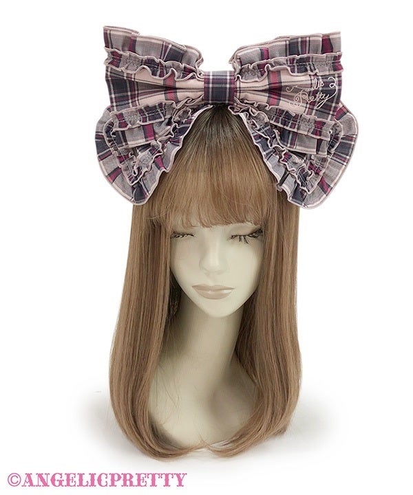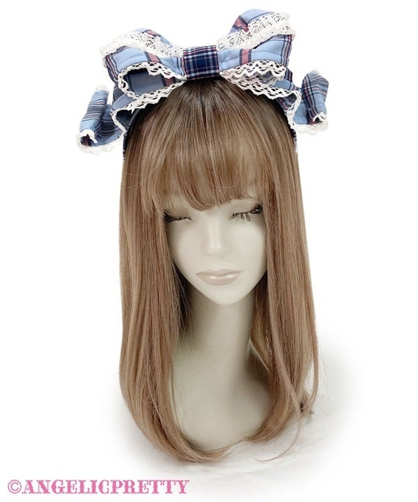 ロゴ刺繍フリルリボンカチューシャ(タータン)