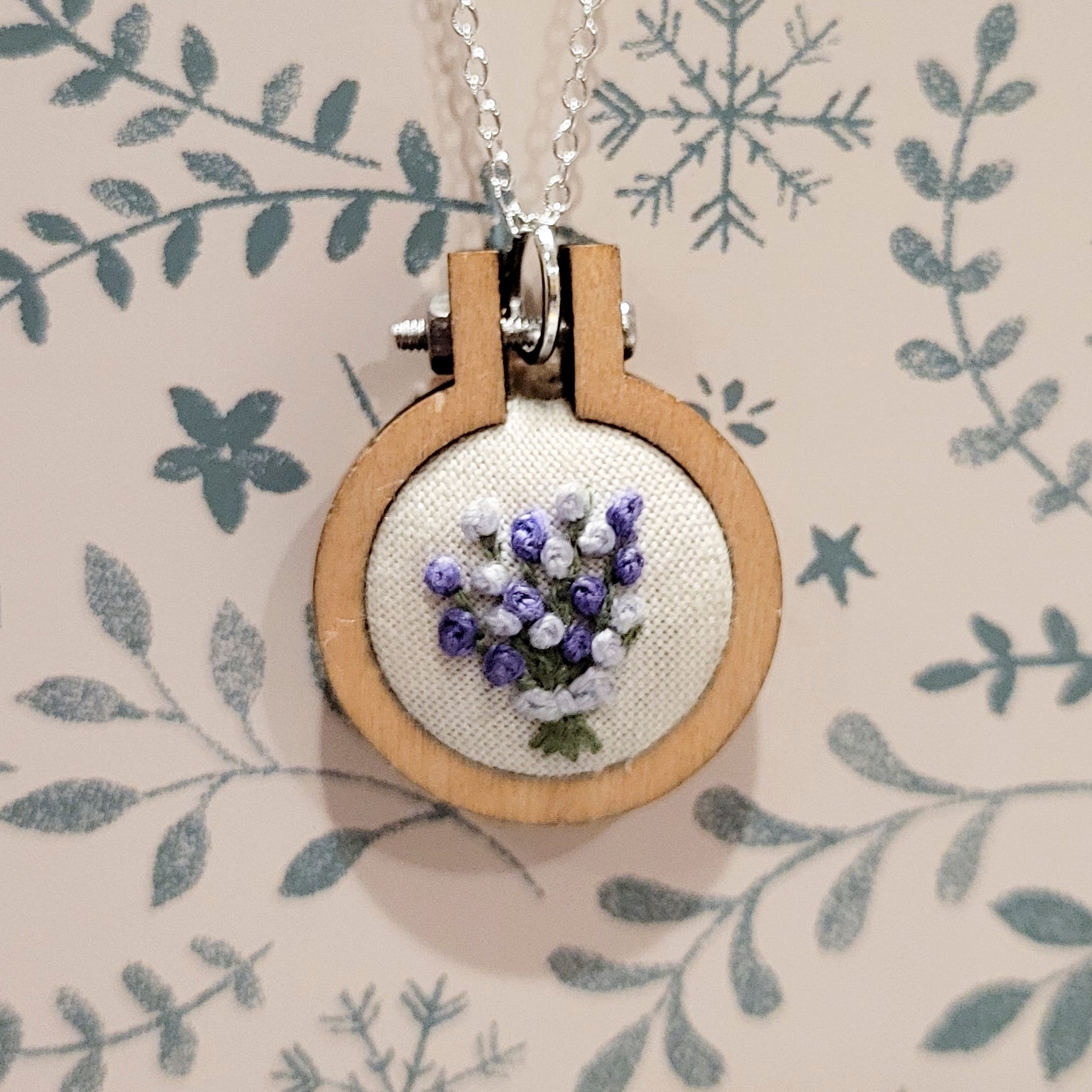 Rainey Regalia ~ Tiny Berry Mini Embroidery Frame Necklace
