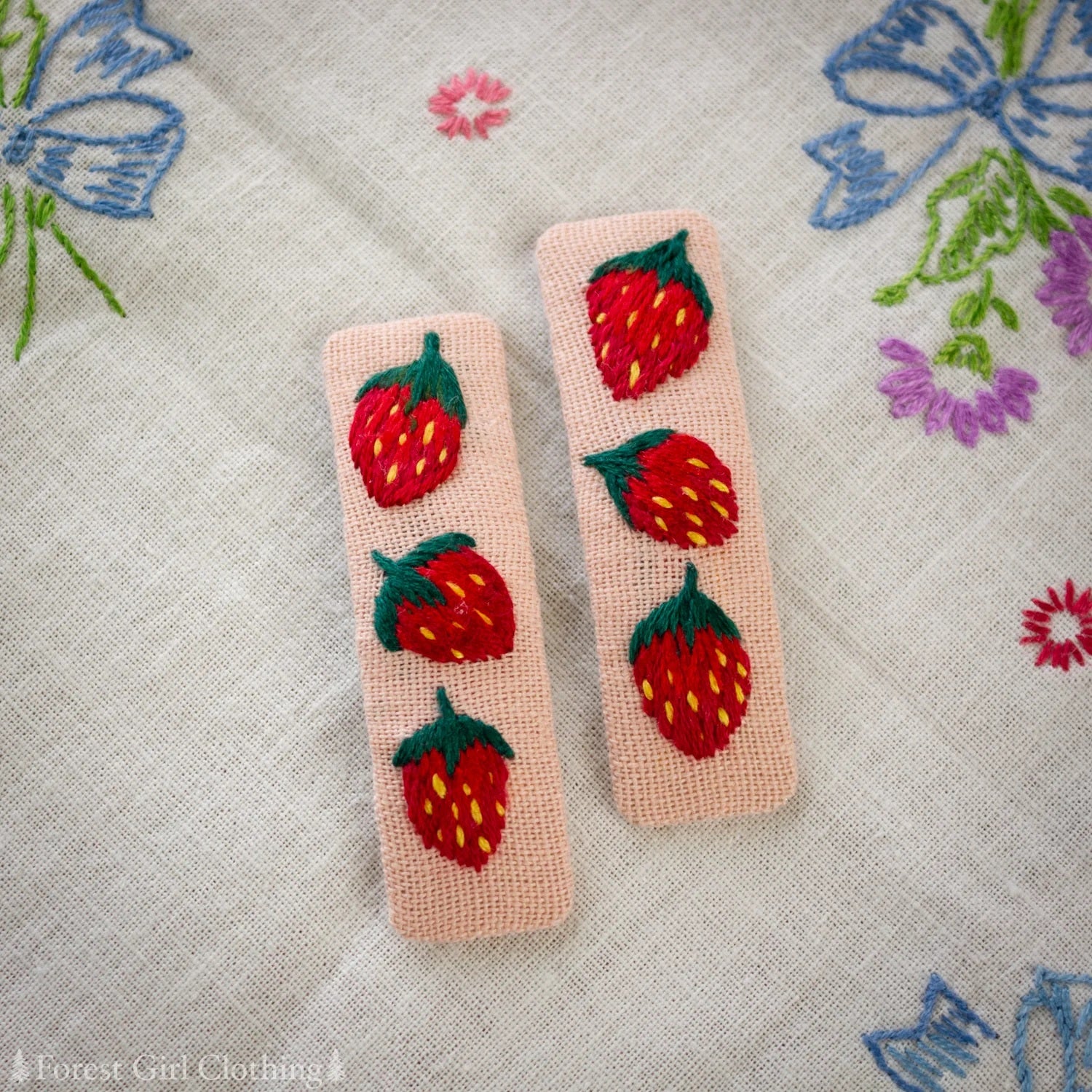 Forest Girl Clothing ~ Atelier Heidi Strawberry Embroidered Hair Clips